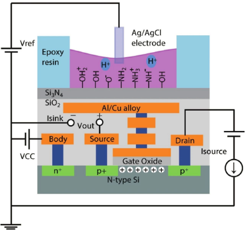 离子敏场效应晶体管(Ion sensitive Field Effect Transistor,ISFET)是一种通过离子敏感膜特异性检测溶液离子浓度的半导体生化传感器,具有高灵敏、高通量、快速、可大批量制造等优势,广泛应用于基因测序、疾病诊断、废水处理、食品安全等领域。