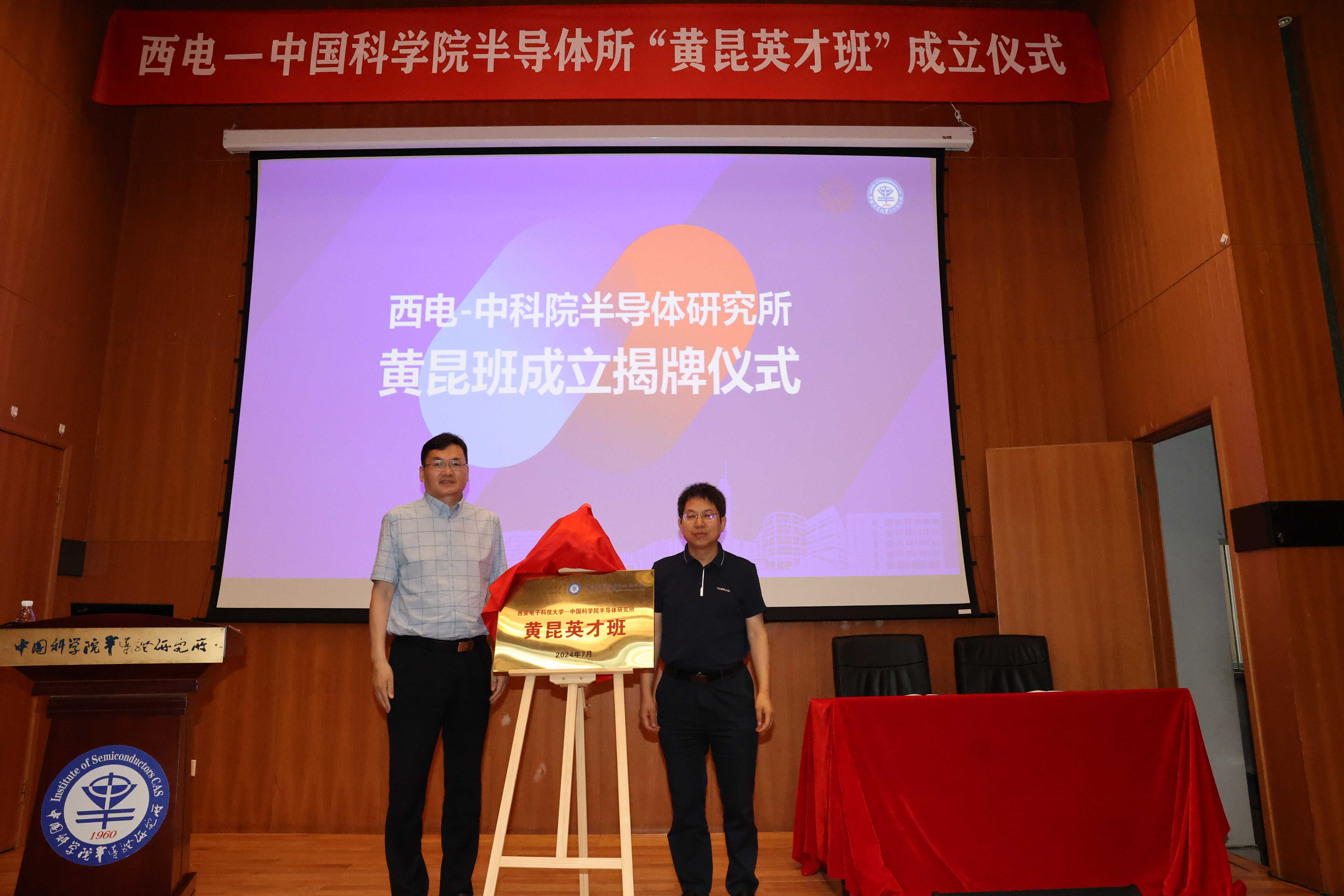 谭平恒、张新亮共同为“西安电子科技大学-中国科学院半导体研究所黄昆班”揭牌,张韵、马晓华共同签订了关于联合举办“黄昆英才班”的合作协议。?