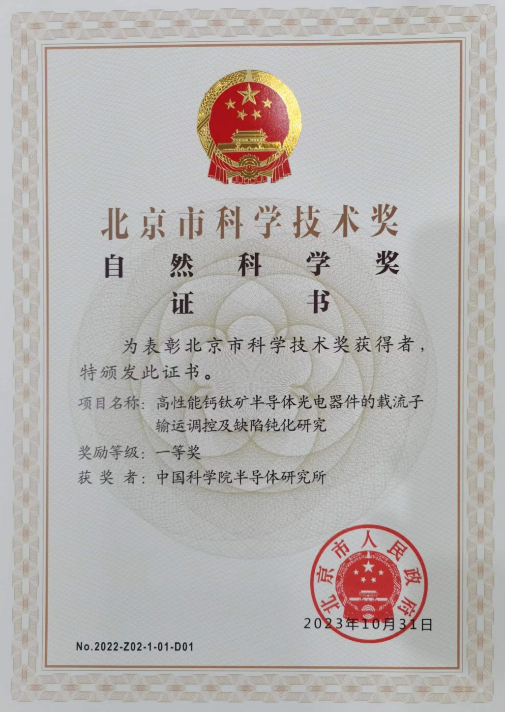 半导体所荣获北京市自然科学奖一等奖
