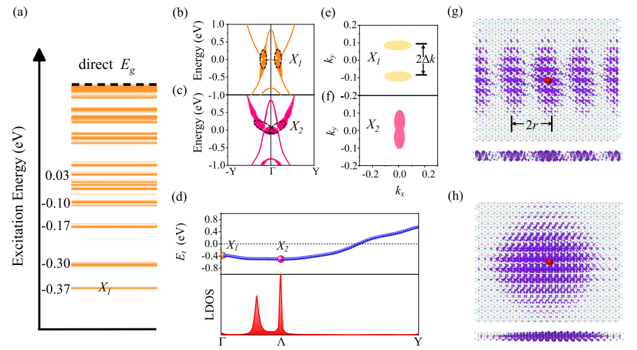 二维材料中显著的激子效应和非常大的激子结合能,为激子绝缘体的研究带来了新的希望。单层WSe2因其位于Γ点处平的价带和较大的间接能隙,显示出独特的激子特性。间接能隙的存在会导致动量间接激子的形成,与直接激子相比,其激子寿命更长。间接激子可以表现出激子玻色-爱因斯坦凝聚(BECs)和激子超流。间接能隙和Γ点附近的平带,使1T’-WSe2单层成为激子BEC和相关多体效应的绝佳平台。