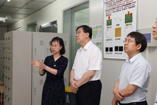 阴和俊一行实地调研了半导体所超晶格实验室、纳米光电实验室和固态光电信息技术重点实验室,与科研骨干进行了深入交流,详细了解了科学研究、攻关任务和人才队伍进展情况。