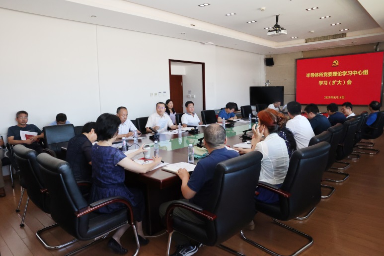 8月18日上午,半导体所召开党委理论学习中心组学习(扩大)会。所领导班子成员所长谭平恒,党委书记、副所长冯仁国,副所长张韵,纪委书记翟金良以及党委委员、纪委委员、机关副处级以上干部等20余人参加会议?;嵋橛煞肴使鞒?。