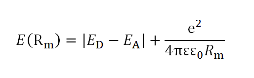 其中EA和EB分别为缺陷能级的能量,Rm为第m?近邻的施主与受主之间的距离,由晶体结构和晶格常数决定,