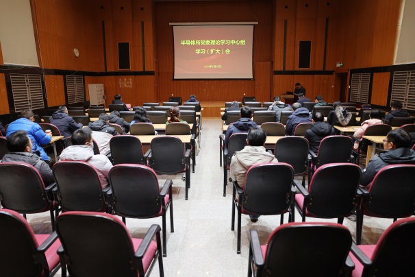 1月19日下午,半导体所召开党委理论学习中心组学习(扩大)会。所领导班子成员所长谭平恒,党委书记、副所长冯仁国,副所长张韵,纪委书记翟金良以及党委委员、纪委委员、实验室正副主任、机关副处级以上干部、党支部书记等40余人参加会议?;嵋橛煞肴使鞒?。