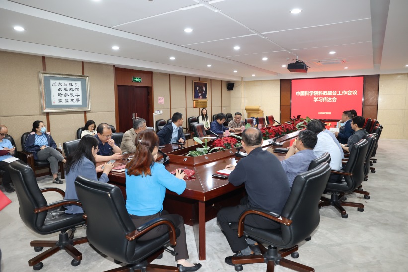 5月7日上午,半导体所召开专题会议,传达学习中国科学院科教融合工作会议精神。所领导、党委委员、纪委委员、机关副处级以上领导干部、党(总)支部书记等近40人参加会议?;嵋橛傻澄榧?、副所长冯仁国主持。