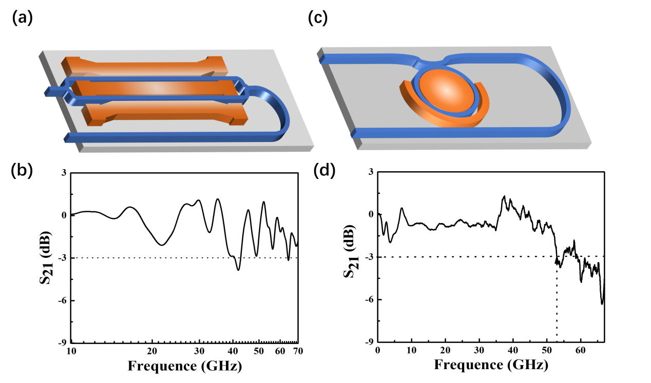 中国科学院半导体研究所李明研究员和国科大杭州高等研究院邱枫研究员合作率先针对晶圆级锆钛酸铅薄膜材料制备和加工展开攻关,利用液相沉积+磁控溅射组合工艺实现了4英寸晶圆薄膜的低成本大规模制备(图1),并成功研制出首个公开报道的新型锆钛酸铅光子集成工艺开发套件PDK库(图2和表1),实现了从材料生长到器件设计与制备的全流程自主可控研发,突破了传统光学材料在制造高速电光调制器时面临的调制带宽和能效制约瓶颈。经测试,制备的马赫-曾德尔电光调制器高频调制带宽大于70 GHz,调制效率1.3 V·cm;微环调制器调制带宽大于50 GHz,调制效率0·56 V·cm(图3)。与硅和薄膜铌酸锂等传统光学材料相比,在保留高调制带宽同时实现了调制效率的大幅提升。如表1所示,首版PDK器件库还包括多模干涉器、光栅耦合器、交叉器等,通过模型设计和工艺优化迭代,整体器件性能和器件库完备性还具备巨大的提升空间。该研究成果将助力我国下一代新型光学材料平台及工艺技术的国产化研发和产业化应用,为光通信和光计算等信息光子技术发展提供重要的材料平台支撑(图4)。