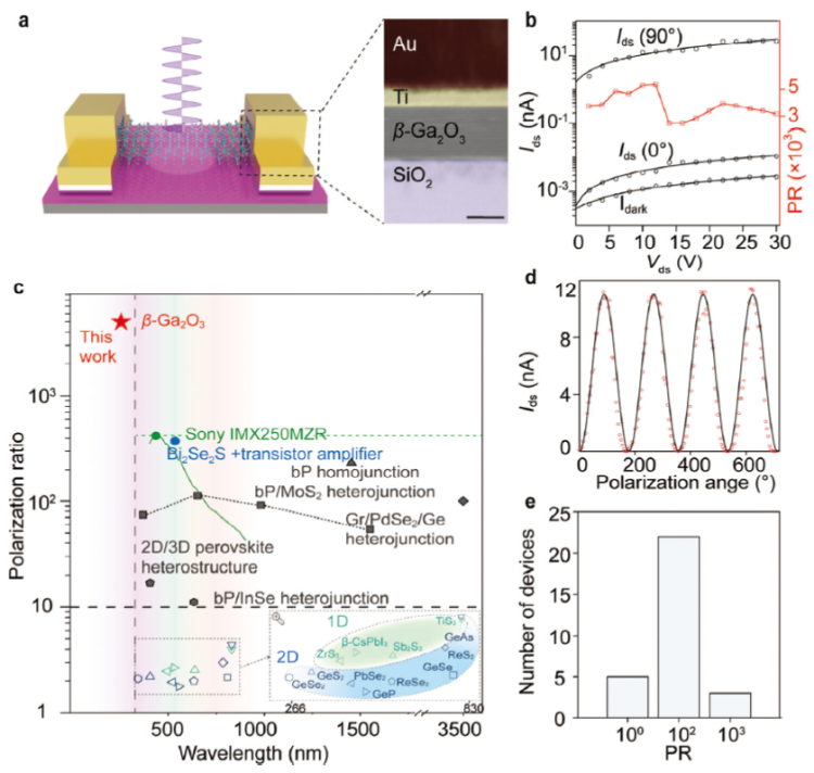 最近,中国科学院半导体研究所魏钟鸣团队与合作者一起,在基于β-Ga2O3的日盲紫外偏振光探测器方面取得新进展。