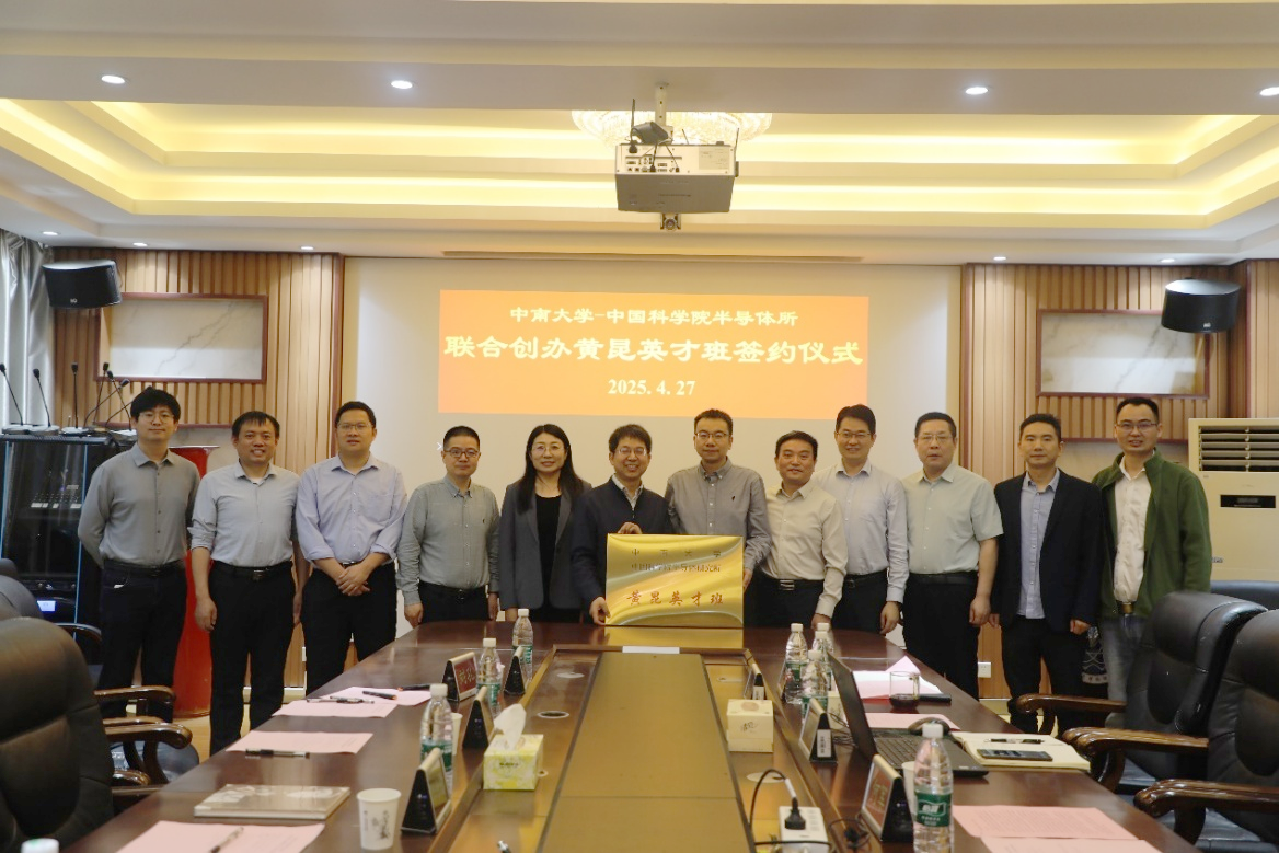 徐艳坤、孙克辉作为双方代表正式签署联合创办“黄昆英才班”协议。随后,谭平恒、何军共同为“黄昆英才班”揭牌。根据协议,“黄昆英才班”将通过在中南大学物理学院相关专业的优秀本科生中进行选拔,通过教师、资源等共享的方式,共同培育具有扎实的专业基础、卓越创新能力的优秀人才。此外,半导体所还设立了“黄昆奖学金”,奖励在“黄昆英才班”中表现优异的学生。