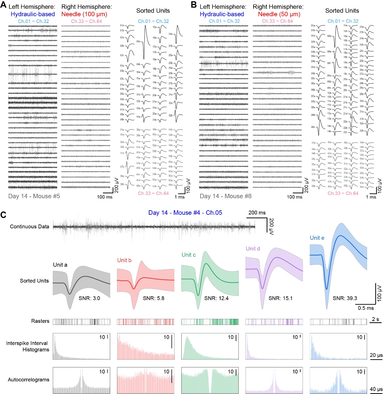 图3 神经触手探针所记录到的高质量神经活动信号